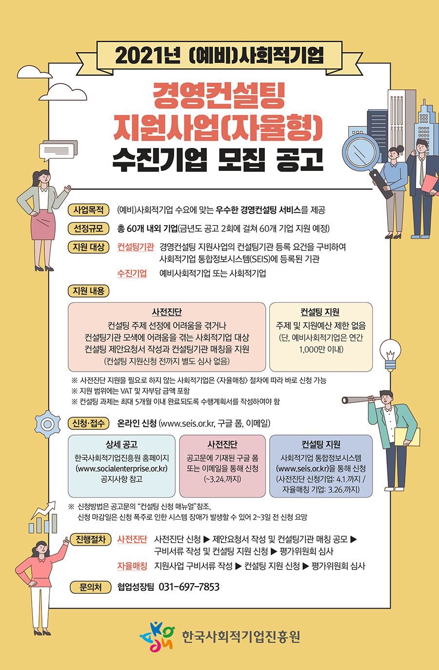2021년 제1차 (예비)사회적기업 경영컨설팅 지원사업(자율형-사전진단 및 매칭) 수진기업 모집 연장 공고