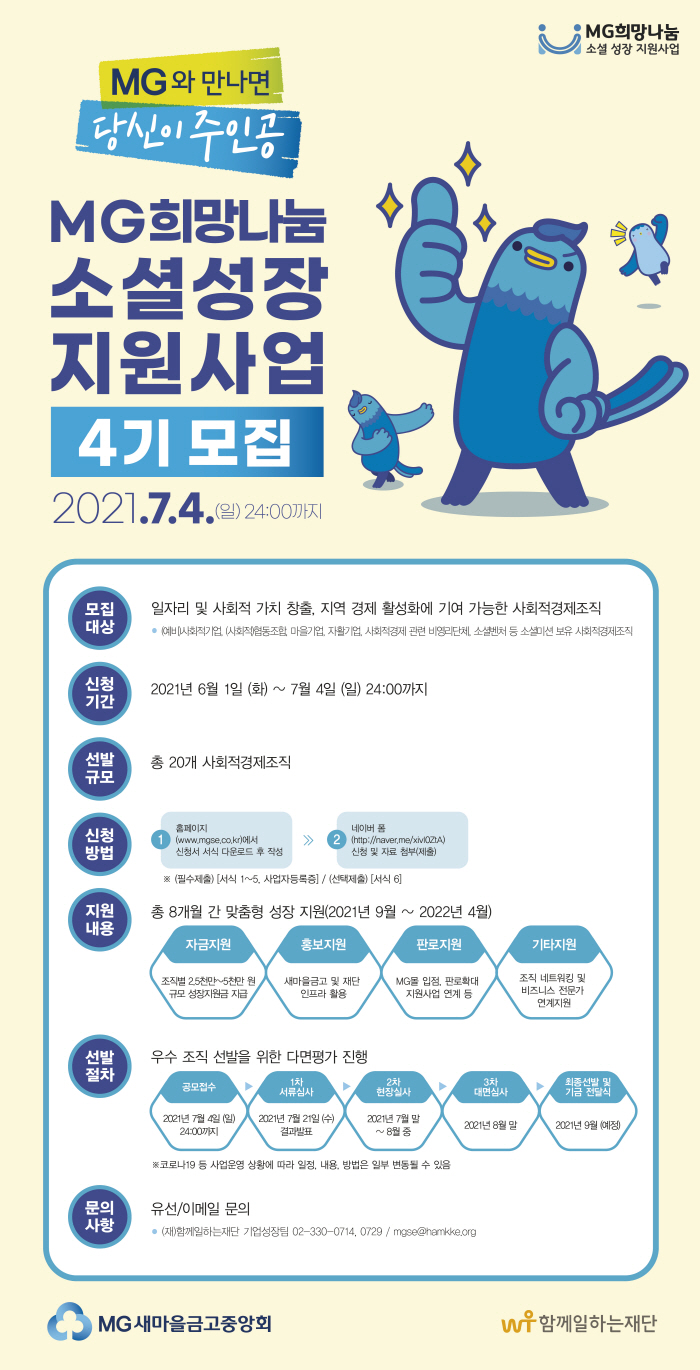 MG희망나눔 소셜 성장 지원사업 4기 참여기업 공모(7월 4일, (일) 24:00까지)