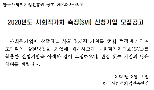 2020 사회적가치 측정 (SVI) 신청기업 모집공고