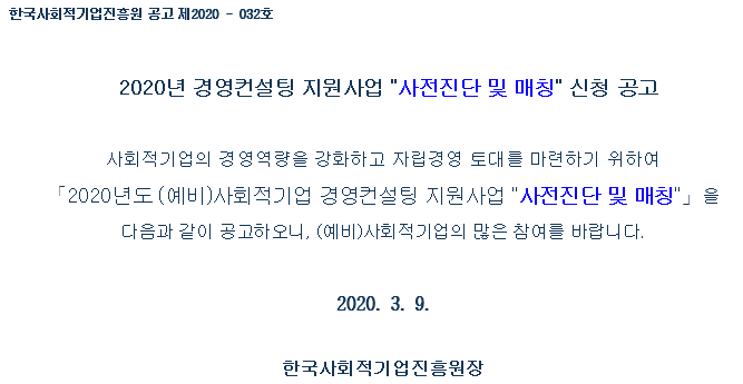 2020 경영컨설팅 지원사업 " 사전진단 및 매칭" 신청 공고~3.25