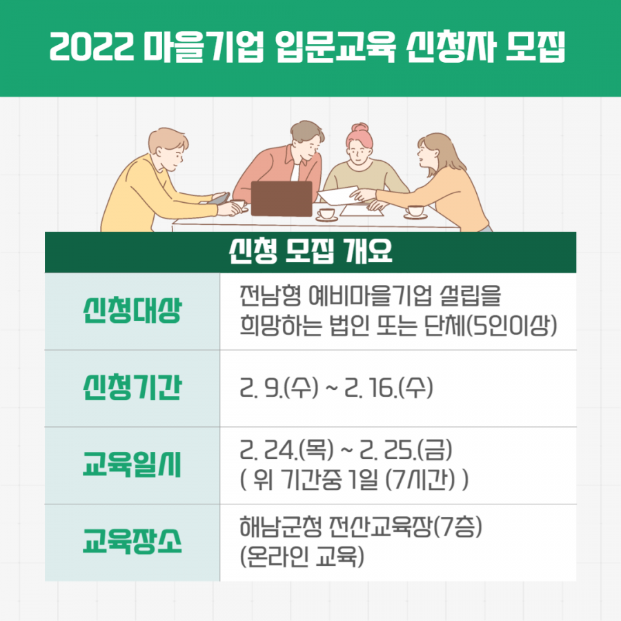 2022년 해남군 마을기업 입문교육신청자 모집 안내
