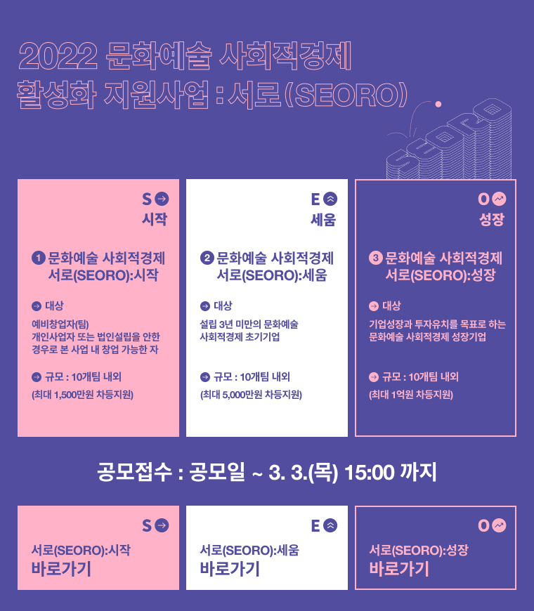 [안내] 2022 문화예술 사회적경제 활성화 지원사업 서로(SEORO) 모집 공고(~3.3)