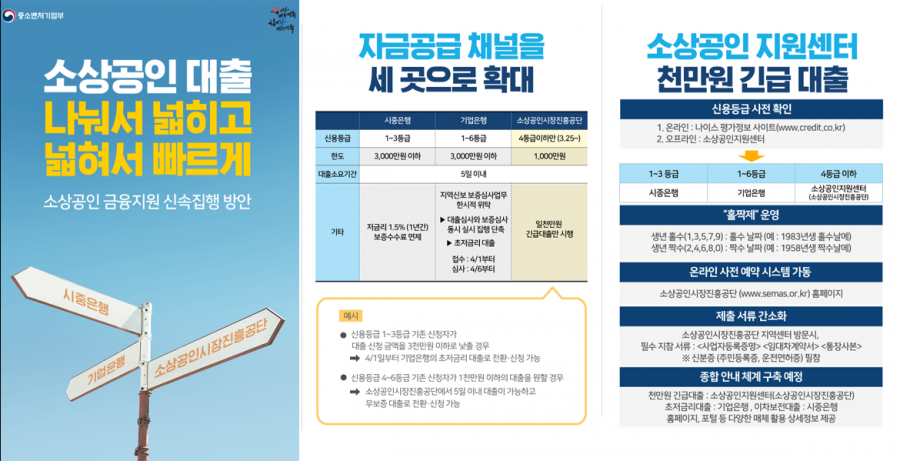 코로나19 대응 소상공인 금융지원 신속 집행 방안 안내 20-04-03 09:28 본문 중소벤처기업부 https://blog.naver.com/bizinfo1357/221877476449 목록
