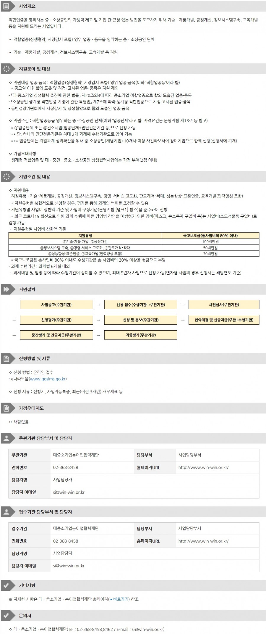 2020년 업종별 경쟁력 강화사업 과제 모집 공고(~4.14)